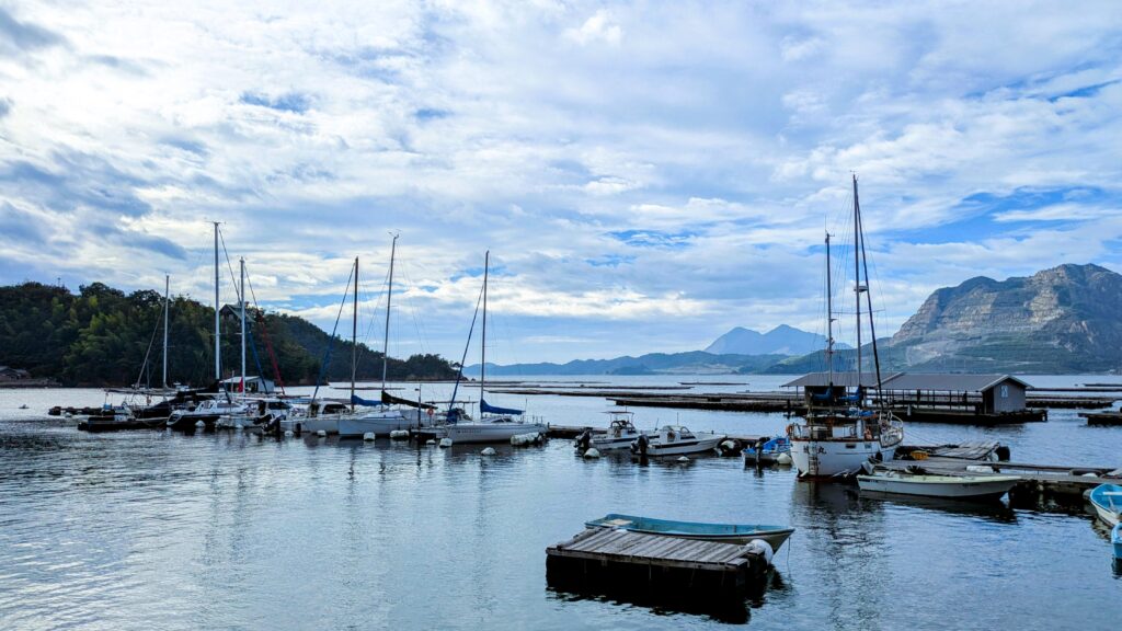 宿の場所から海岸線に沿って西に向かうと小さな集落がいくつかあり、西の端までたどり着くと、江田島や岩国方面が望むことができます。
