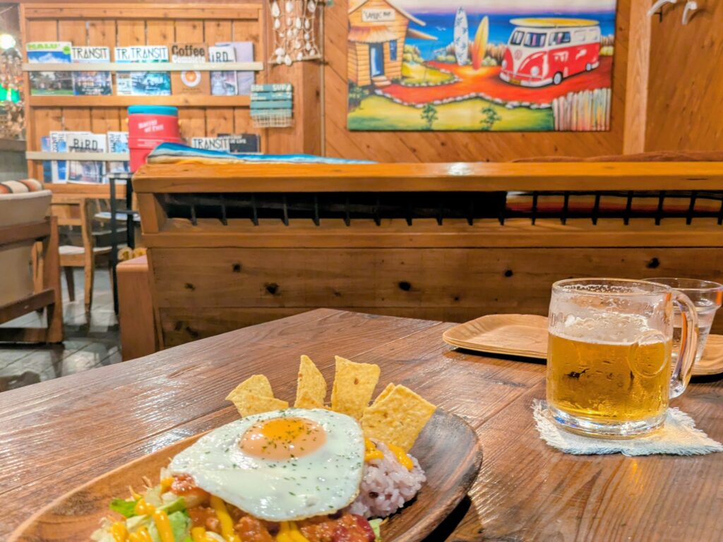 浜辺に面した場所にカフェがあり、モーニングもやっています。