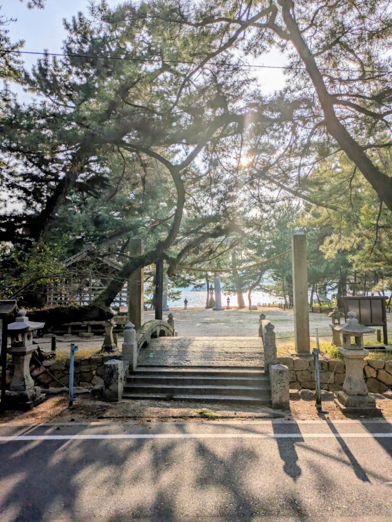 桂浜神社の参道に立つ、一本の立派な松。海から吹く風と、人々の祈りを何度も受け止めてきたその根は深く、静かにこの地に寄り添っています。