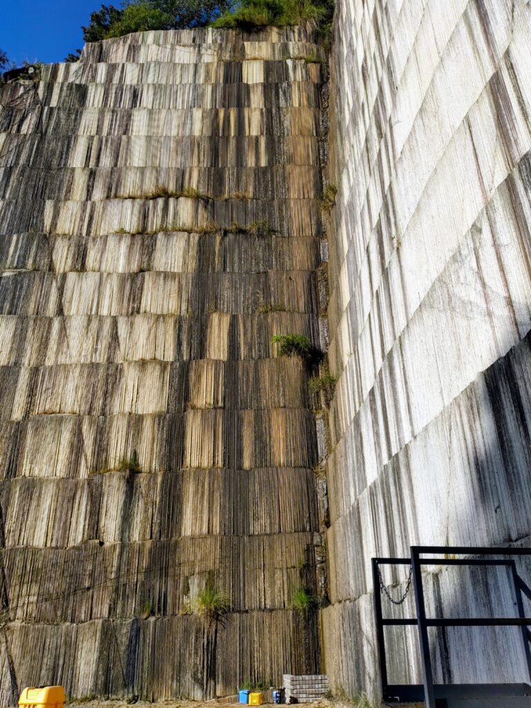 桂が浜神社は、多くの神社が「山から里へ」「里から町へ」と人を導くのに対し、ここでは祈りの先に、海がある。右の画像は石切り場の跡地。