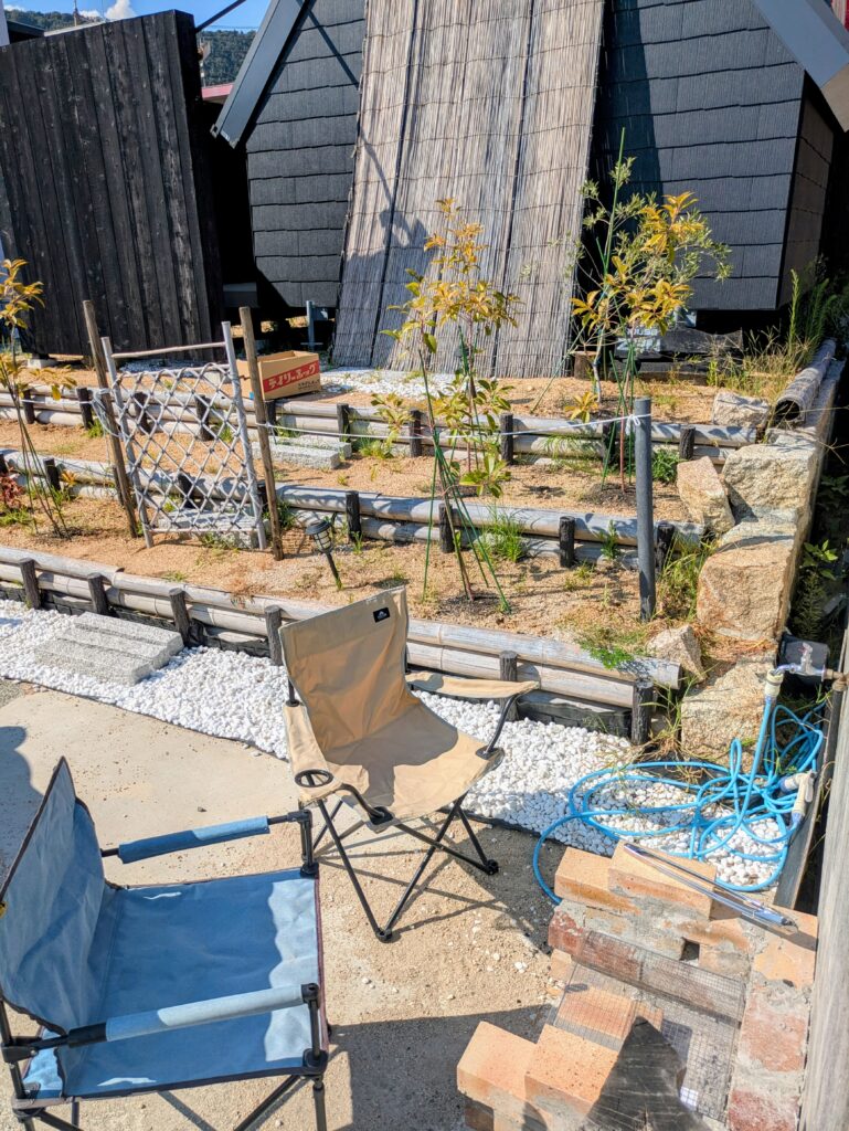 建物の正面入口にあるレンガの焼き台は、炭を使ったバーベキューが楽しめます。水道も近くて安心で、焚き火台としても活用可能。またテラスではカセットコンロとバーベキュー鉄板を準備しています。利用方法については、事前に案内しますので、ご希望の場合は、事前リクエストをしてください。